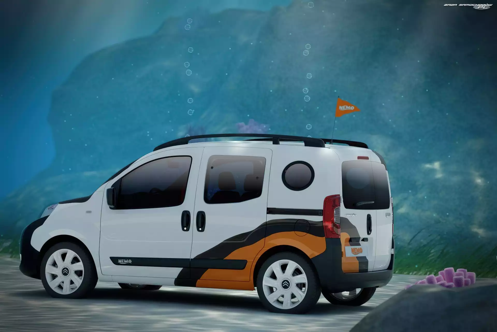 Maska, Citroen Nemo, Zderzak Przód, Citroen Nemo Ryb, Citroen Nemo, Ławica Dnie, Citroen Nemo, Na Boczne, Citroen Nemo, Drzwi Citroen Nemo, Wnętrze Woda, Citroen Nemo Okno, Citroen Nemo, Okrągłe Relingi, Pomarańczowy, Citroen Nemo Citroen Nemo, Kierownica Citroen Nemo, Dostawczy Tuning, Citroen Nemo Van, Citroen Nemo Przesuwne, Citroen Nemo, Drzwi